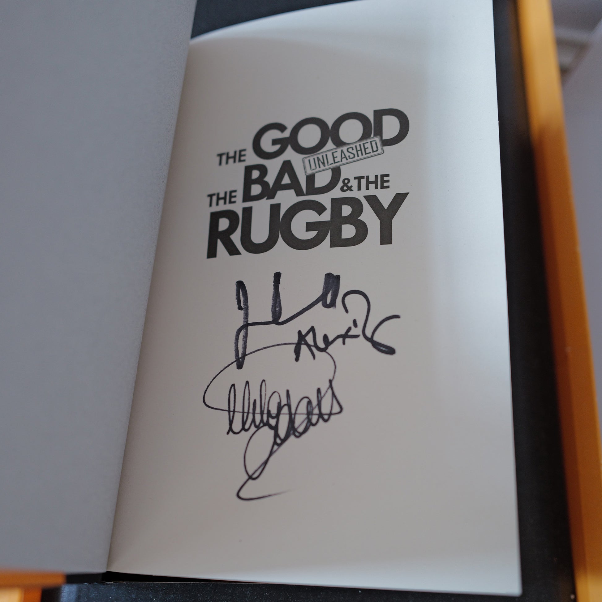 A limited edition run of bottle and book boxes including a 70cl bottle of Blackeye Gin and a signed copy of The Good, The Bad & The Rugby Book.
