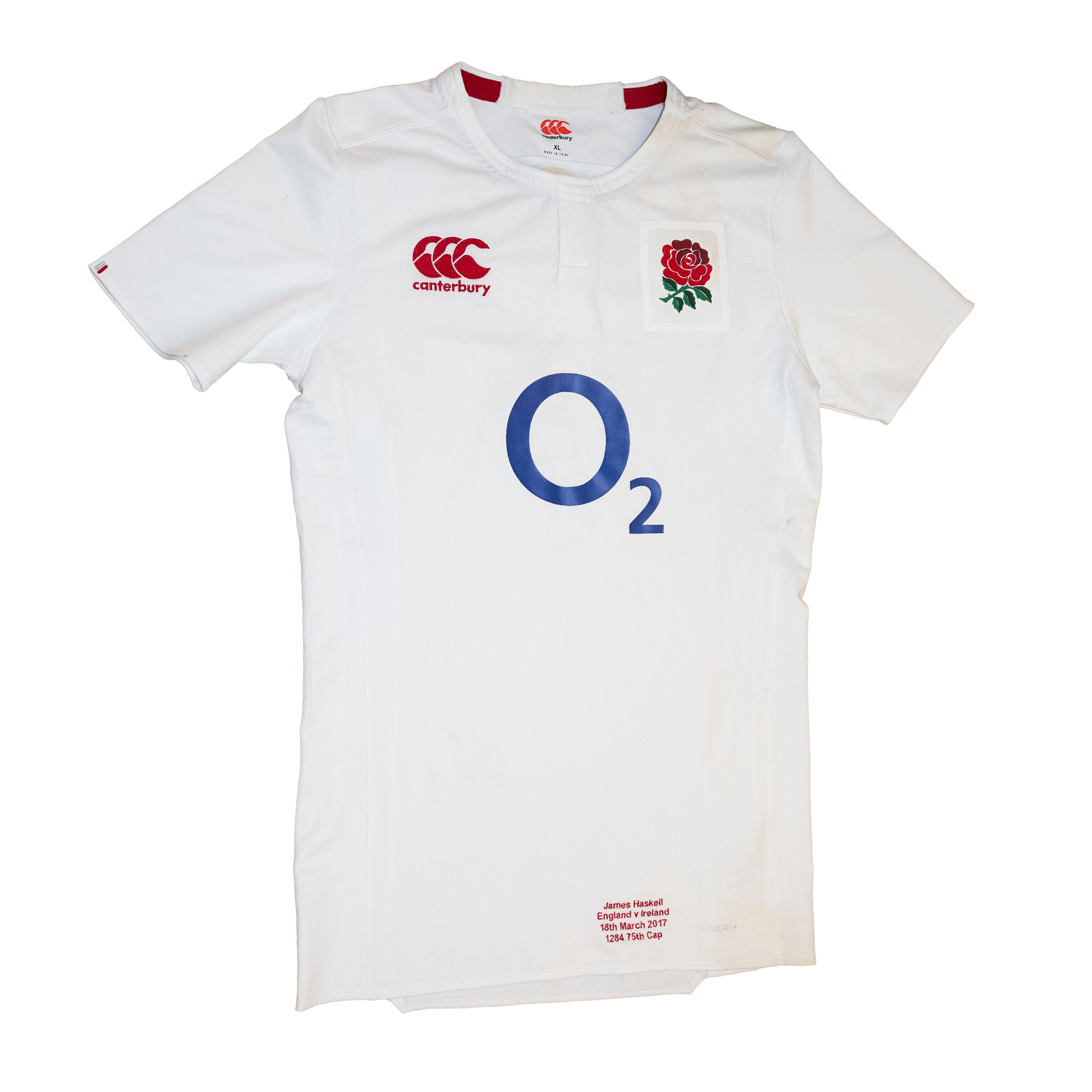 A rare match-issued England Rugby jersey from James Haskell’s 75th international cap, worn for England v Ireland, Six Nations, 18th March 2017.